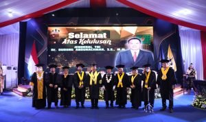 “Berdasarkan hasil rapat yudisium sidang terbuka promosi doktoral pada program doktor ilmu ekonomi, dengan mempertimbangkan prestasi, ketekunan, ketelitian, kesungguhan, dan semangat promovendus dalam menjalankan proses pendidikan, dengan ini diputuskan Dudung Abdurachman dinyatakan lulus cum laude,” kata Kadarsah Suryadi.