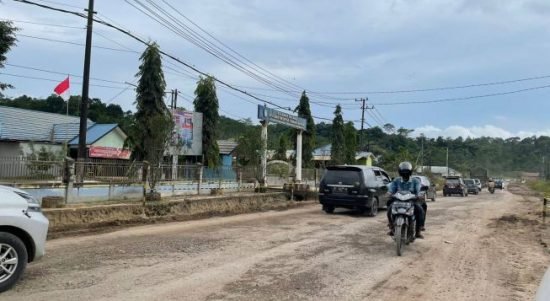 Akses jalan utama penghubung beberapa Kabupaten di Kalimantan Timur (Kaltim) yang sejak lama menjadi keluhan masyarakat di Desa Tanah Datar, Kecamatan Muara Badak,