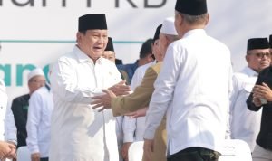 “Telah hadir bersama kita, Ketua Umum Gerindra Pak Haji Prabowo,” kata Muhaimin disambut tepuk tangan puluhan ribu kader PKB.
